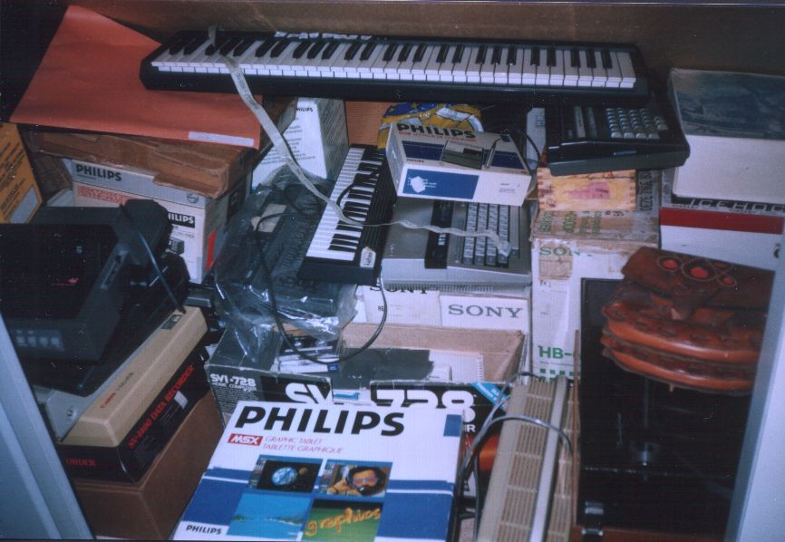 Yes! It's true! Since about June 1998, I started collecting everything with an MSX logo on it! So if you have some MSX stuff for sale (low priced of course) or just want to donate something for my MSX collection, please mail me! Thanks in advance! I even put a message on the "Wanted" page of NOS-Teletekst (page 404), which is the Teletext page of the Dutch public tv channels. Unfortunately the ad was in the middle of Backstreet Boys and Kelly Family ads.... Here it is: